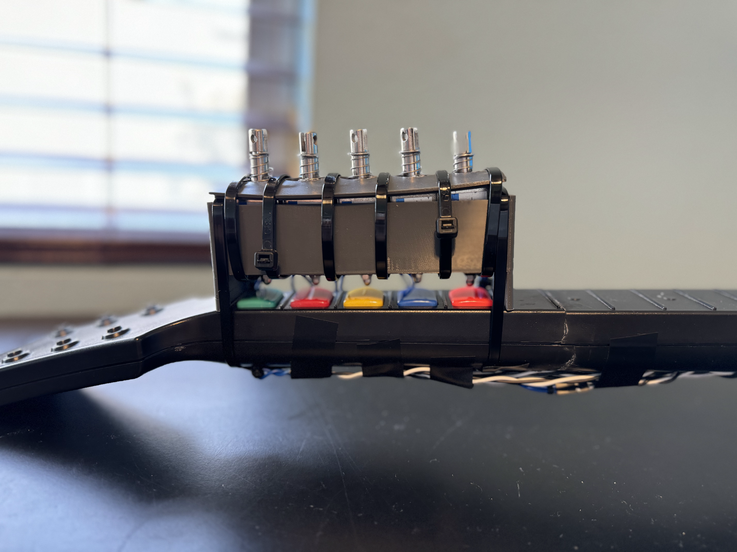 This is a robot that plays any Guitar Hero song on Expert difficulty with 100% accuracy. The robot can play more than 40 notes per second.